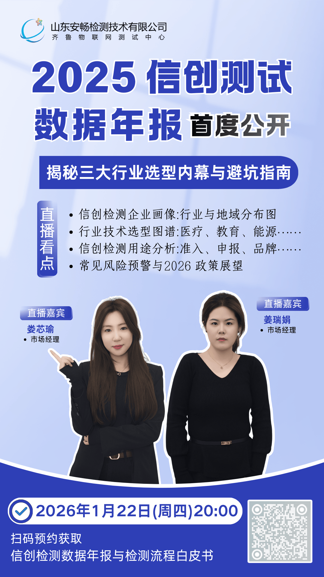 1月22日(周四)晚8点,安畅检测市场经理姜瑞娟、娄芯瑜将携信创检测项目年度数据,开启专场直播!我们不仅梳理2025核心政策、前瞻2026行业风向,更要结合真实案例,分析信创推进中的高频风险场景,奉上能直接落地的避坑策略!