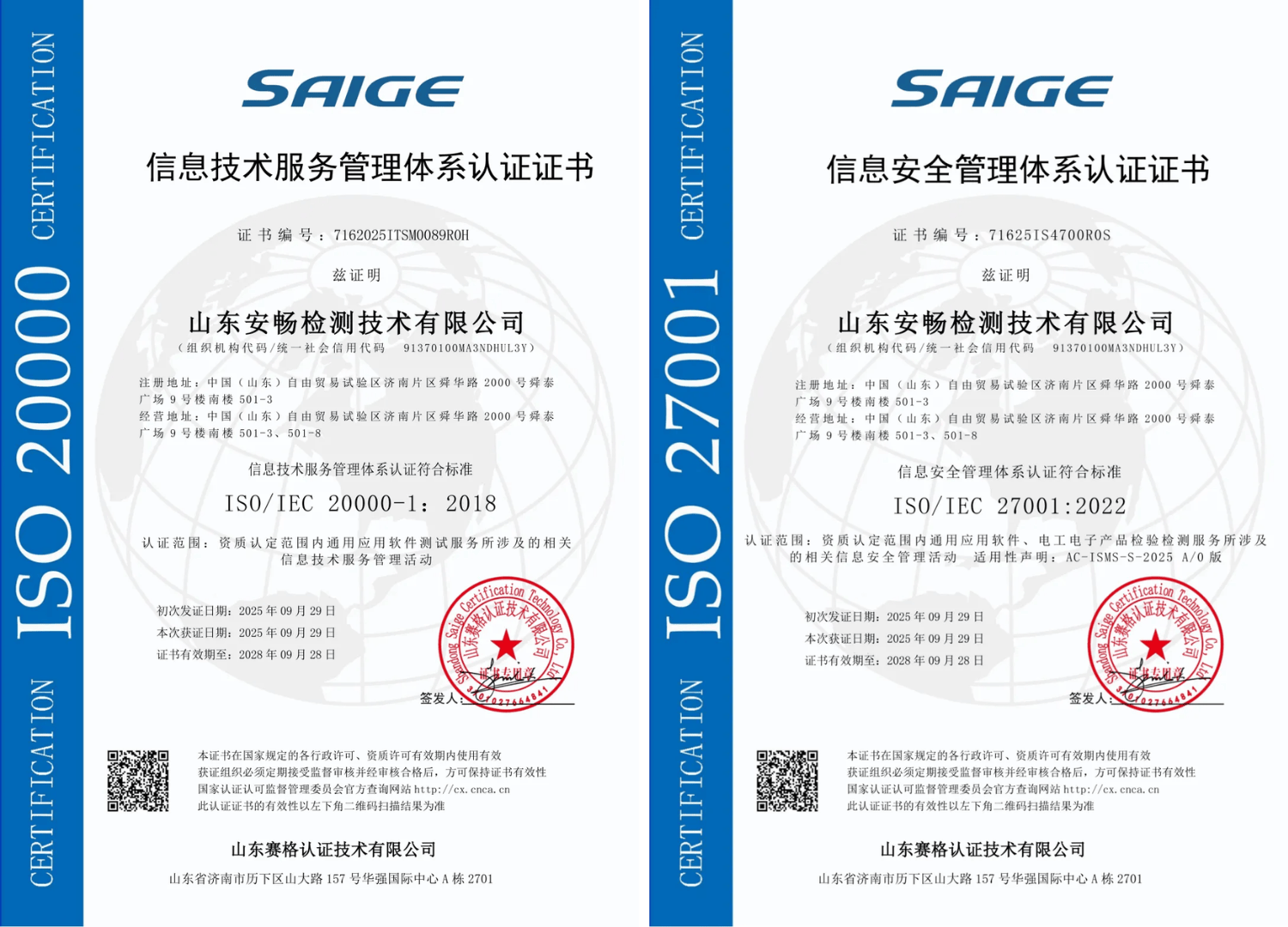 安畅检测具备CMA、CNAS测评资质,是一家经国家认可委、质监局等单位认可的国家级测试测评机构,2024年6月,入选第一批数字化转型“标准+”工作站(济南站)分站。